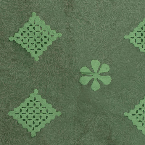 Duppatta Floral Diamond Applique Cotton with Ball design Border,Green