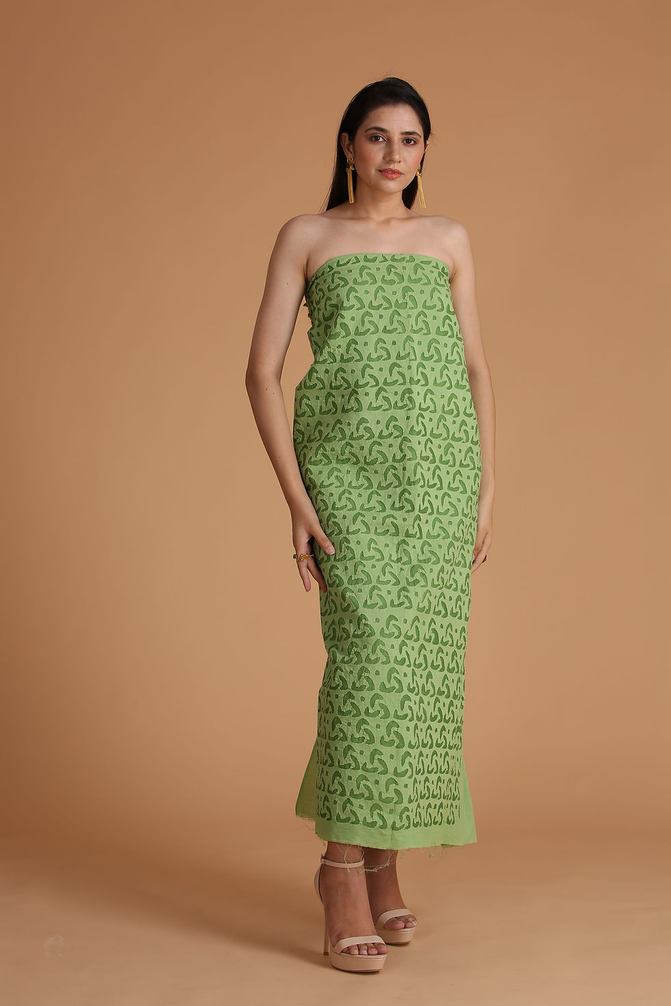 Kurta Fabric Applique Long Box Khuddi Design, Light Green